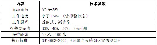 三、JTY-H-VDC1382A線型光束感煙火災探測器技術指標