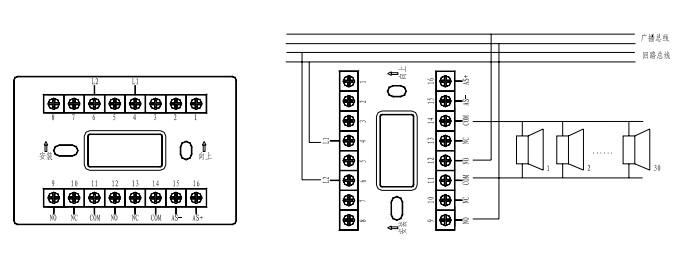 4、廣播線之一接端子9,另外一根接端子12,音箱分別接在端子11和端子14上;