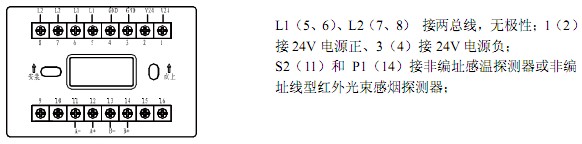 10、接非編址探測(cè)器:每只模塊分別可接LN2110/C≤25只;非編碼普通紫外探測(cè)器1只;非編址線型紅外光束感煙探測(cè)器1只;