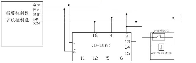 8、多線控制盤的輸出信號通過 JBF-151F/D 雙切換接口盒實現對重要設備的控制,同時多線盤與JBF-151F/D雙切換接口盒之間的線路狀態可通過控制器主機進行監控。