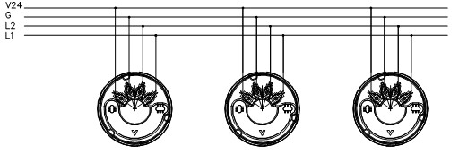 3、端子L1、L2接報警信號總線無極性,端子V接24V電源+,端子G接24V電源-;