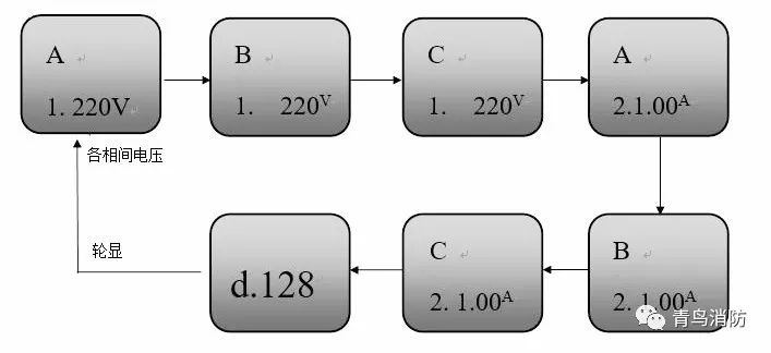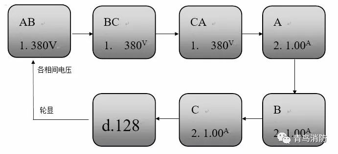(4)傳感器具有對(duì)三相四線制消防電源的電壓值進(jìn)行實(shí)時(shí)監(jiān)控的功能,可在100秒內(nèi)報(bào)出消防電源的供電中斷、過(guò)壓、欠壓、缺相、錯(cuò)相、過(guò)載等故障;